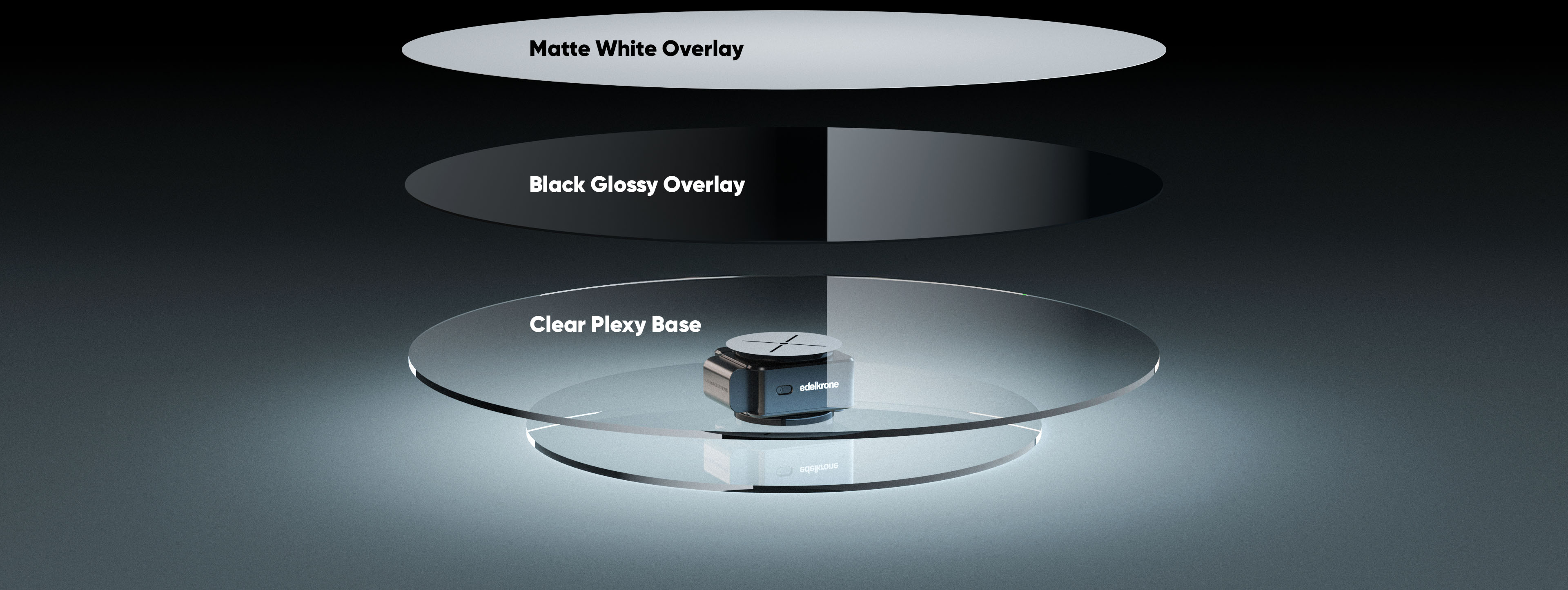 The black glossy overlay creates bold, dramatic visuals with stunning reflections, while the matte white overlay provides a clean, perfect surface. Plus, it becomes translucent when lit from below, allowing for vibrant colors or animated LED effects—unlocking endless creative possibilities.