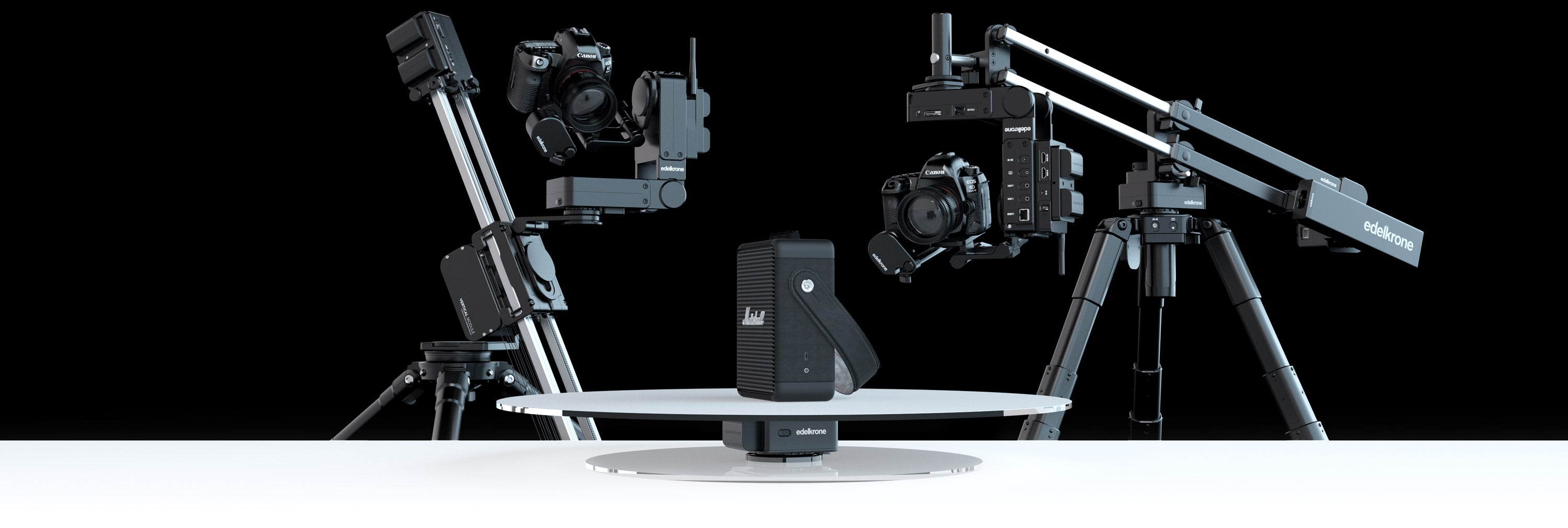 You can pair your HeadPLUS v3 with any version of HeadONE to rotate your products and combine it with any edelkrone body device (Jib, Slider or Dolly) to control your camera movements.