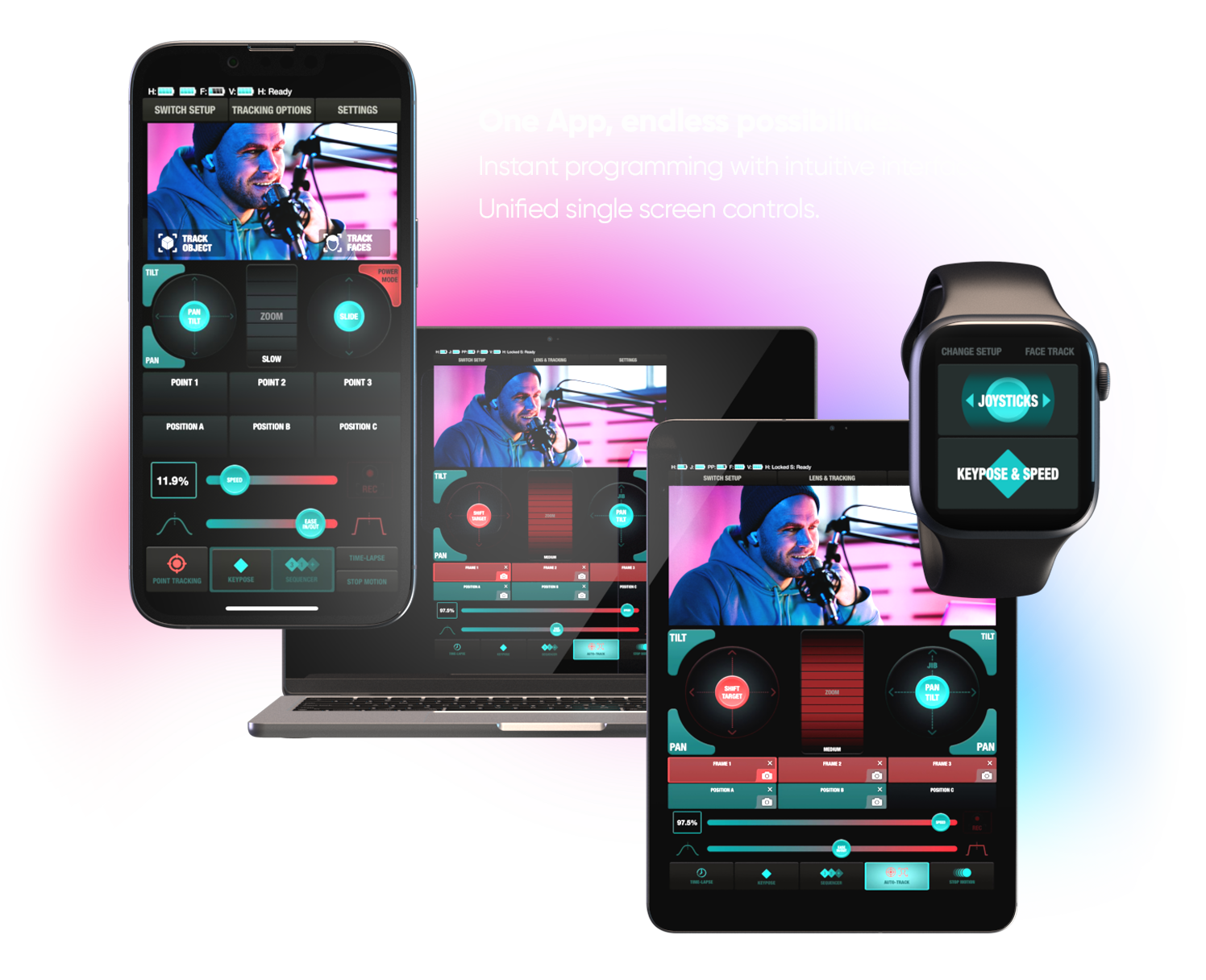 With the exclusive Point Tracking feature, our devices will perfectly keep your subject in frame and in focus—no matter how you move the body devices.