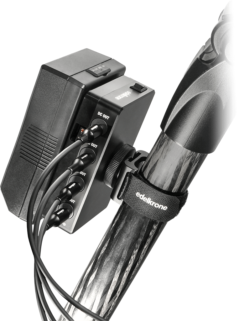 Powers up to 4 edelkrone devices with a single V-Mount or Gold Mount battery.