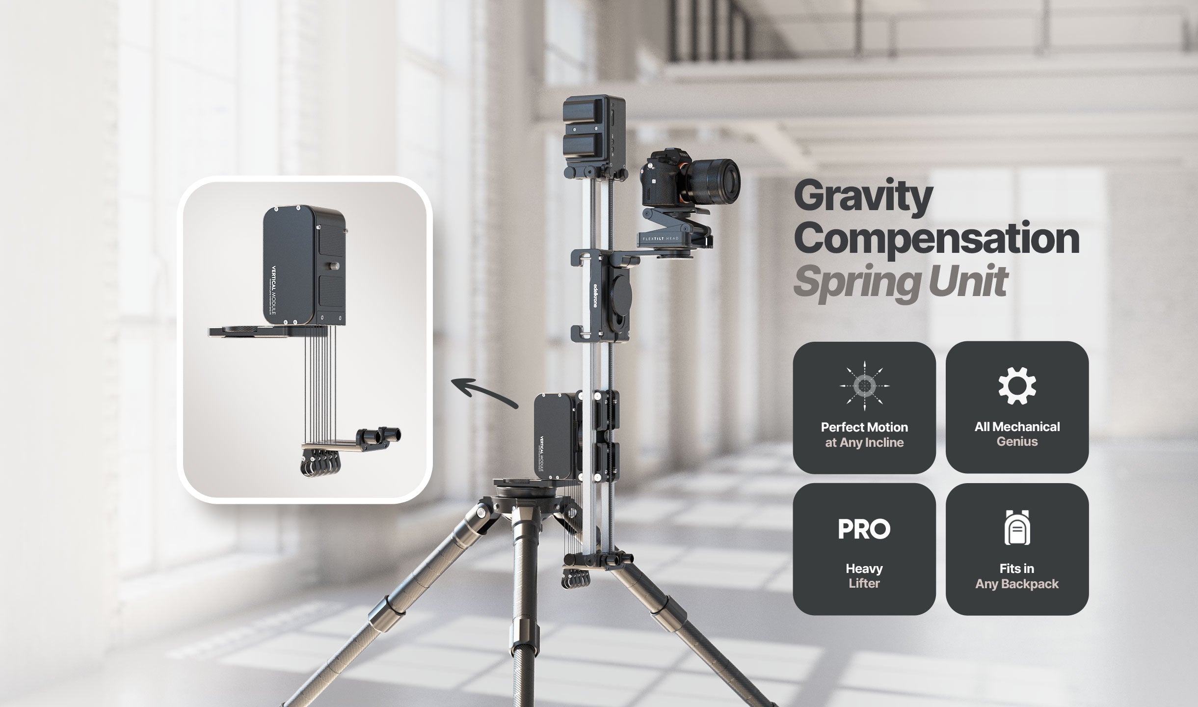 Spring-powered mechanism that assists in carrying your SliderPLUS PRO setup, allowing the Motor Module to move the SliderPLUS PRO effortlessly at any incline.